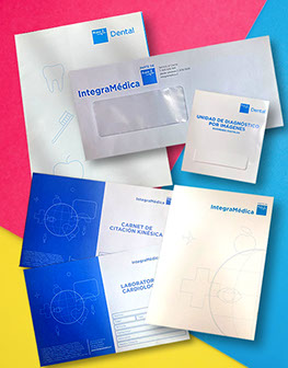 Hojas carta/sobres/tarjetas de visita/carpetas corporativas/formularios.